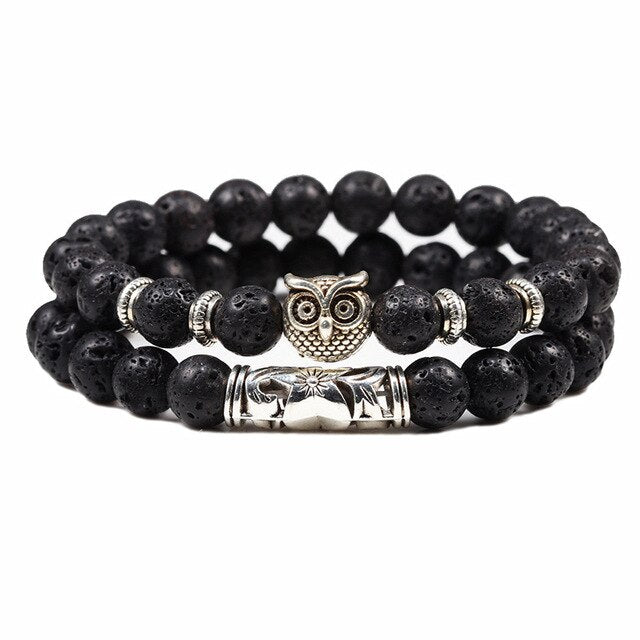 Quality Men 2pcs/set Black Lava Stone Beaded Bracelets